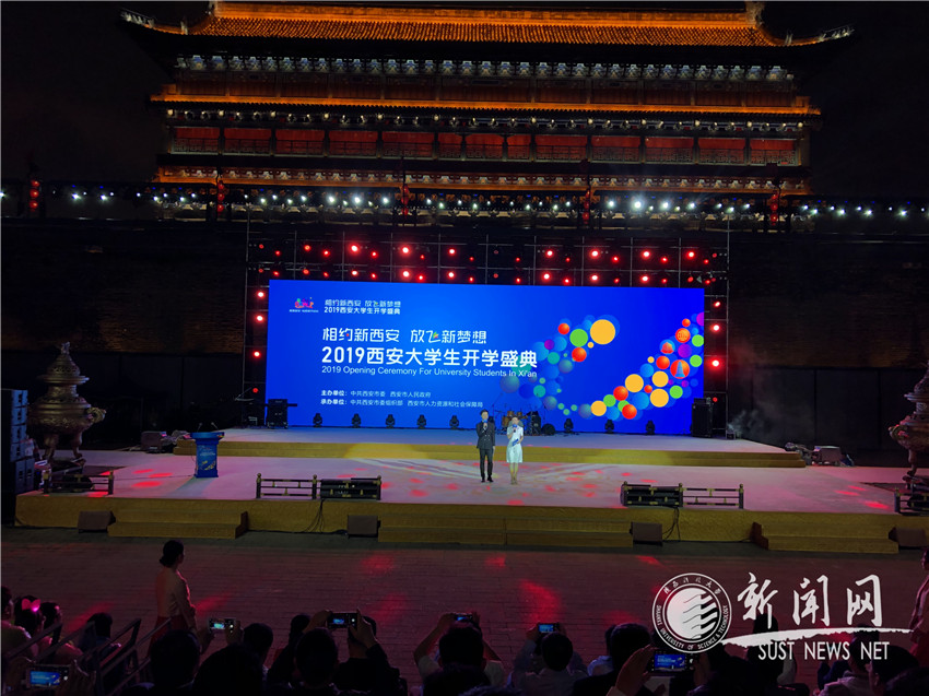 9月12日晚,由西安市委、市政府主办的“相约新西安·放飞新梦想”2019西安市大学生开学盛典在城墙永宁门精彩上演。西安市委副书记、市长李明远出席。校长马建中及万象城官网14名2019级新同学与近30所兄弟院校的师生代表一道受邀参加此次活动。