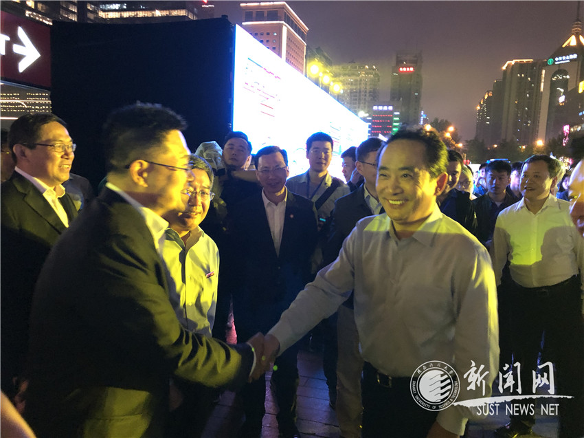 西安市委副书记、市长李明远与校长马建中(图左一)握手