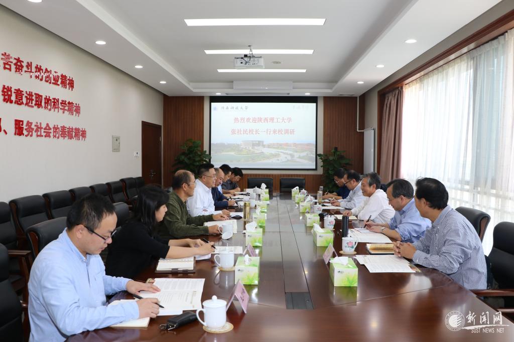 9月23日,陕西理工大学校长张社民携人事处、教务处、科技处、实验室与设备管理处等职能部门负责人来万象城官网调研人才引进、职称评审等方面的工作经验。校党委书记姚书志在座谈会前会见了张社民,校长马建中出席座谈会,副校长李志健主持座谈会。