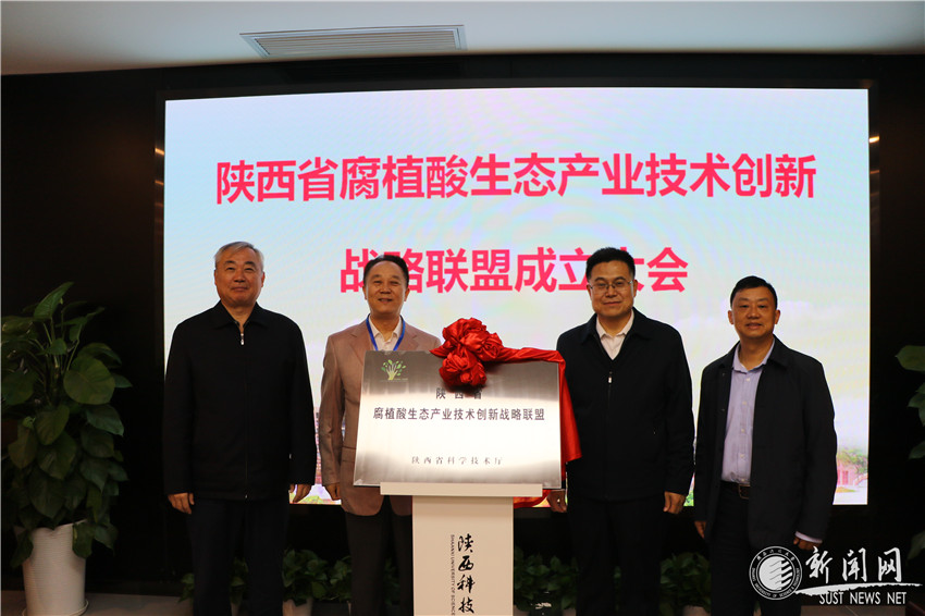 冀峰宣读了《陕西省科学技术厅关于同意组建陕西省腐植酸生态产业技术创新战略联盟的批复》,林黎明、曾宪成、马建中和黄剑锋共同为联盟成立揭牌。