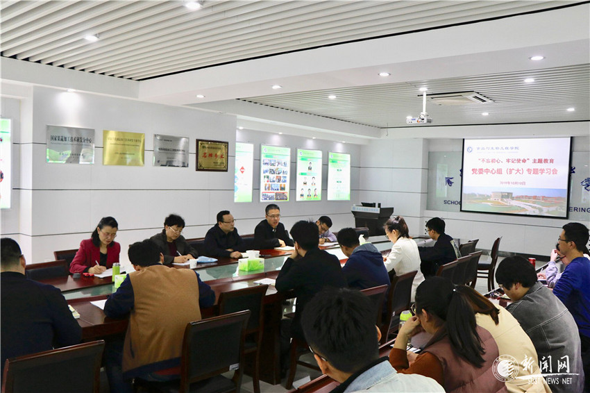 食品与生物工程学院党委于10月10日召开中心组(扩大)学习会,围绕“坚守初心和使命,弘扬奋斗精神”主题开展集中学习研讨。校党委副书记王道安参加指导集中学习,学校主题教育第一指导小组王淑霞一行参加学习会,学院党委中心组成员、所属各党支部书记参加会议,会议由食品学院党委书记訾荣禄主持。