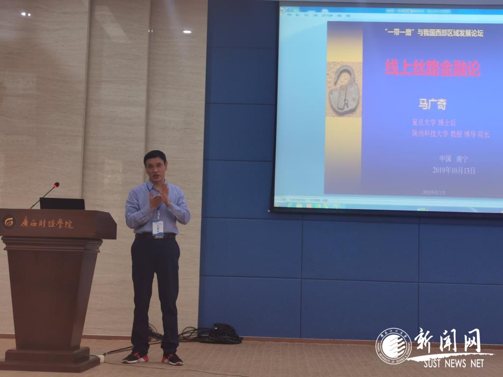 10月13日,“一带一路与我国西部区域发展论坛”在广西南宁举行。万象城官网经济与管理学院院长马广奇教授受邀出席论坛,并做专题报告。论坛由复旦大学博士后校友会和广西财经学院主办,吸引了来自国内11个省市的120多名政府部门领导、高校专家学者及企业家代表参加,人民网、广西日报、南宁新闻网等媒体对论坛作了深入报道。