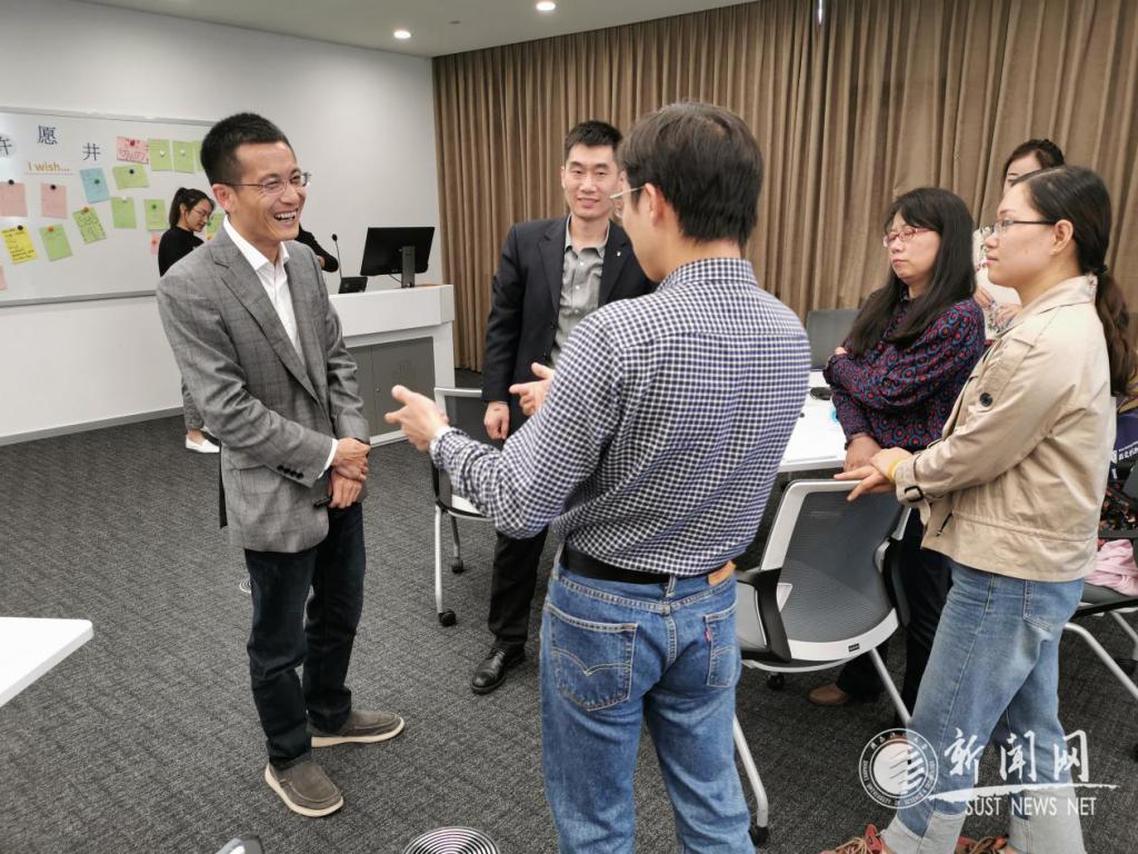 领导与教育前沿院常务副院长张晓军(左一)与研修班学员交流