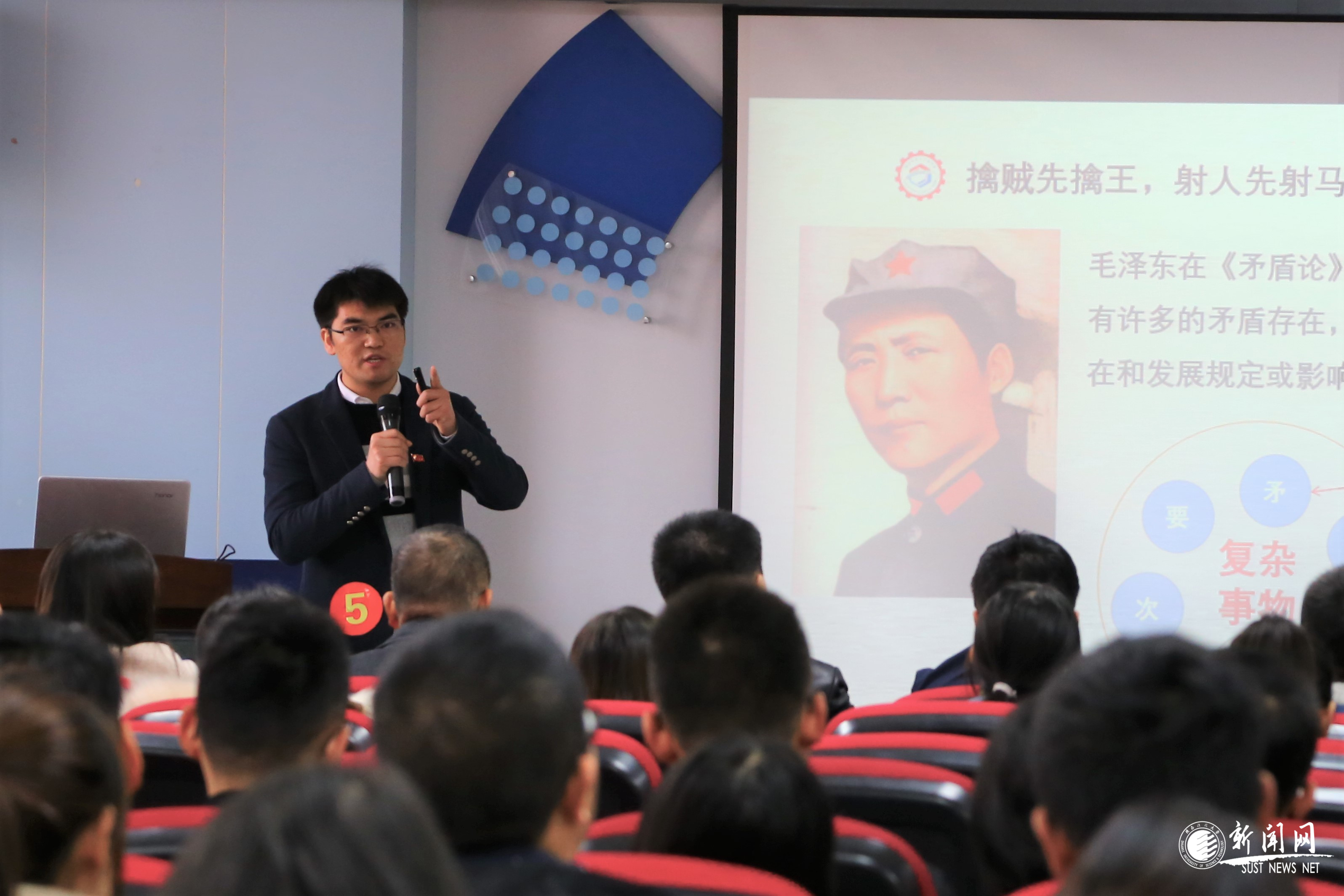 台上激情澎湃,台下热血沸腾,精彩的比赛在学生党员评委中引起了强烈的反响。材料科学与工程学院本科生刘振婷说:“老师们通过多种授课方式将一个个对于工科生而言可能是枯燥的、乏味的政治理论知识讲得引人入胜,今天我又重新认识了马克思,更加理解艰苦奋斗的重要性。”食品与生物工程学院本科生刘淼说:“听各位老师的讲课给人一种润物无声、娓娓道来的感觉,同时也使我对老师们讲授的内容产生强烈的思想认同。一上午的听讲使我对坚持艰苦奋斗精神、三创两迁精神,至诚至博校训有了新的认识。”