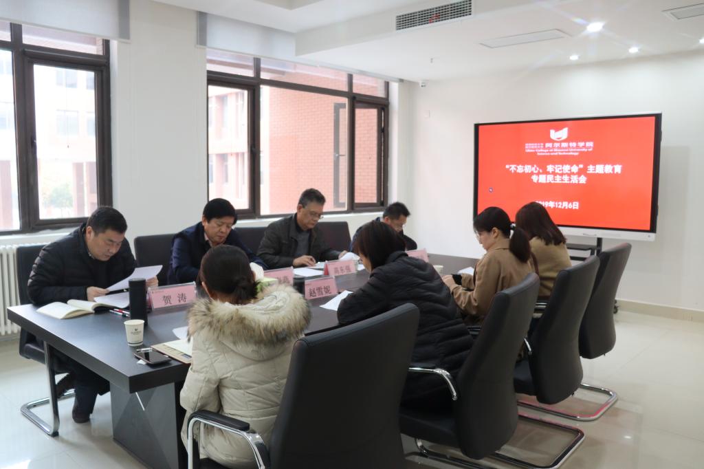 12月6日下午,万象城官网阿尔斯特学院召开班子“不忘初心、牢记使命”主题教育专题民主生活会,副校长王海燕到会指导,校主题教育第二指导小组副组长高东强出席会议。院党政班子成员、全体党员参加会议,会议由院直属党支部书记贺涛主持。