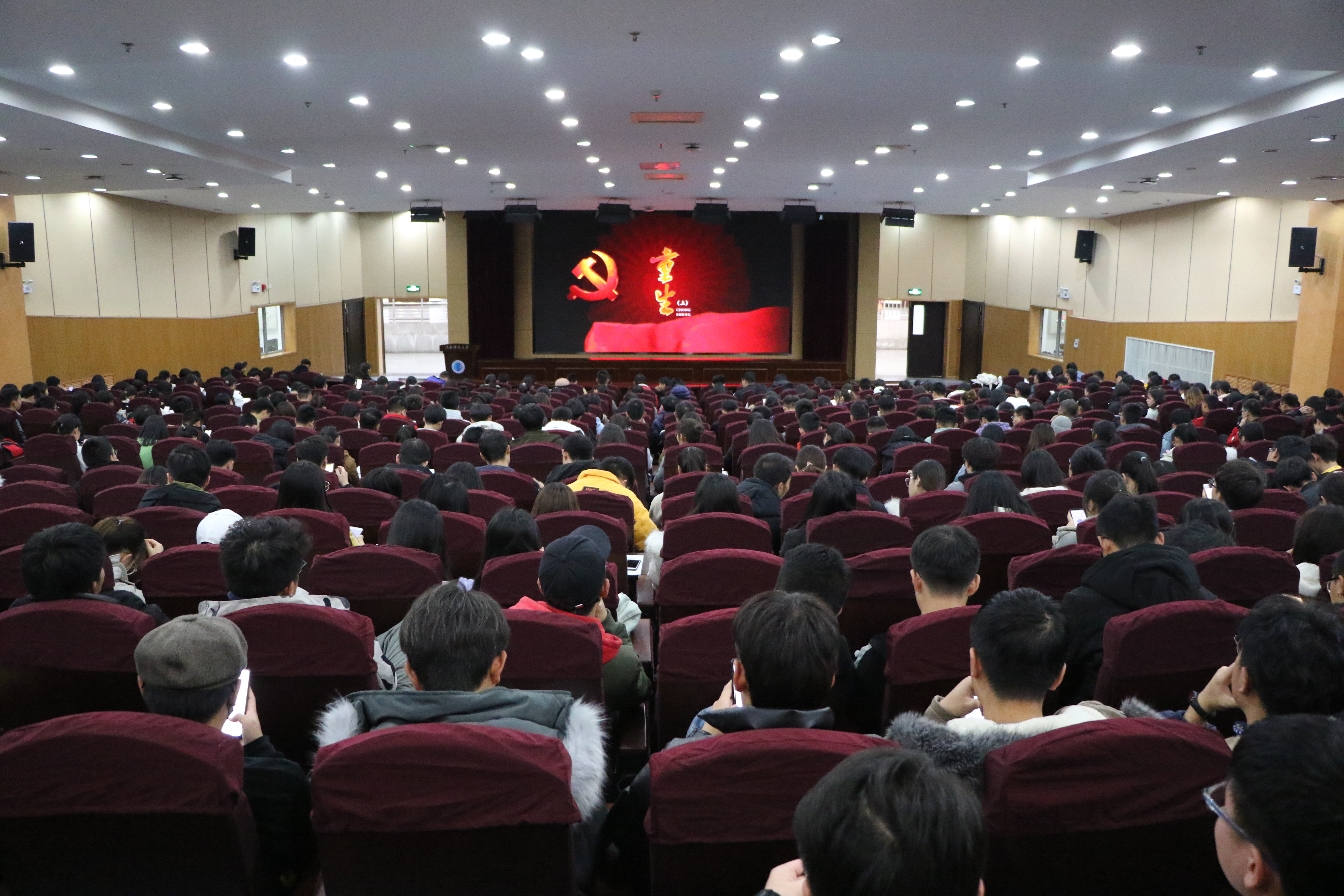 为深入学习贯彻习近平新时代中国特色社会主义思想、党的十九大精神和全国教育大会精神,加强校园思想文化阵地建设,创新思政教育模式,充分发挥影视艺术作品对广大师生思想引领和价值导向的重要作用。12月10日,学校与“全国校园电影院线”联合开展“传承红色基因·担当复兴重任”党史类纪录电影《重生》(上)观影活动,500余名师生观影。“看红色电影,爱伟大祖国”优秀电影进校园活动燃爆全场。