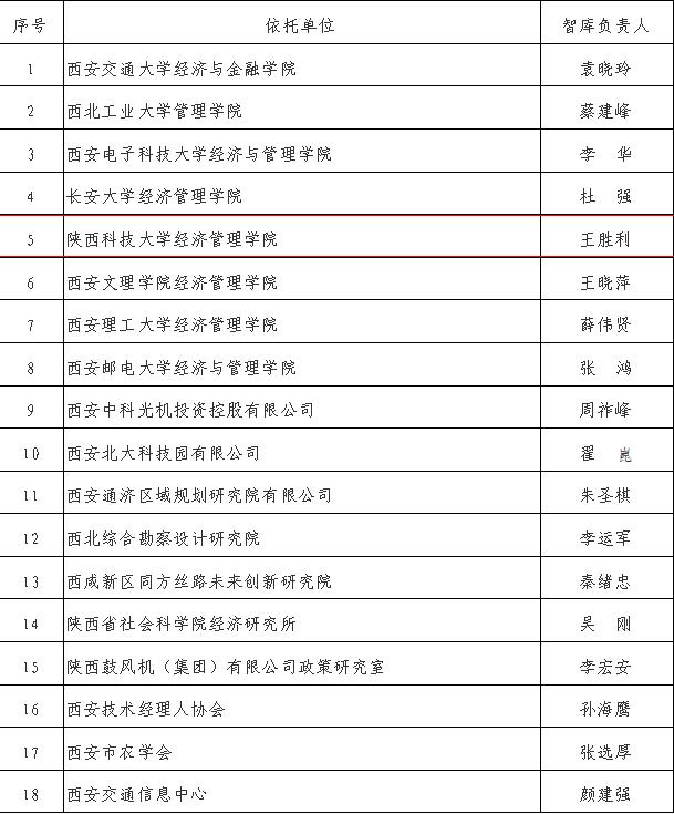 12月20日,西安市科技局公布了全市第一批科技创新智库建设认定结果,经过申报、评选、公示等环节,共有18个科技创新智库入选,其中高校智库8个,万象城官网经济与管理学院王胜利教授负责申报的科技创新智库位列名单之中。