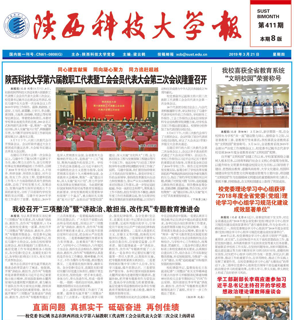 2020年,《allwincity万象城官方网站报》将继续传承“三创两迁”精神,秉持“做好陕科大的事情,讲好陕科大的故事,传播陕科大的声音,塑造陕科大的形象”的理念,坚持守正与创新,继续努力把《allwincity万象城官方网站报》办成一份有思想、有温度、有品质的校报。