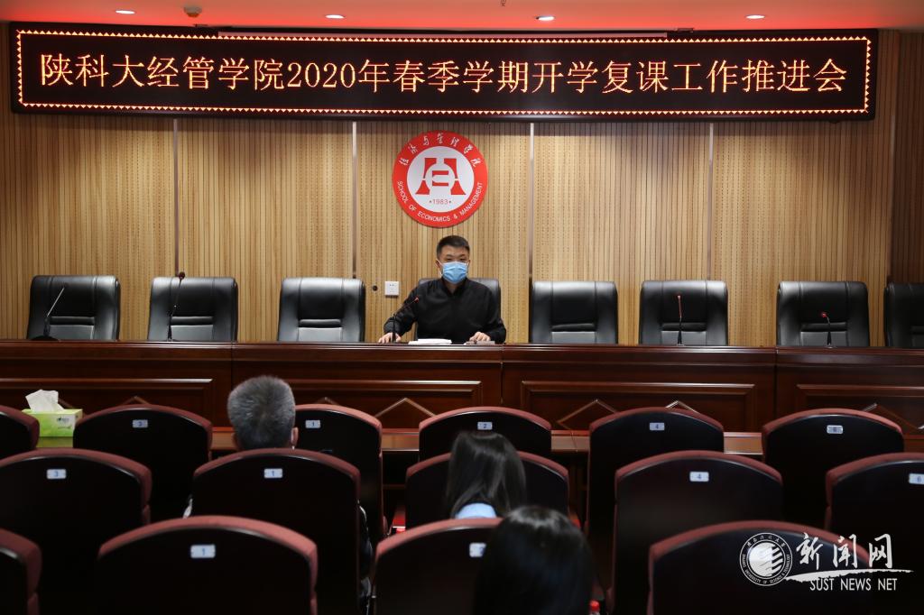 为确保开学复课工作顺利开展,4月29日下午,经管学院在人文楼712会议室召开春季学期开学复课工作推进会,院领导班子成员、各系室主任、教工党支部书记及毕业班辅导员参加会议。会议由学院党委书记崔楠主持。