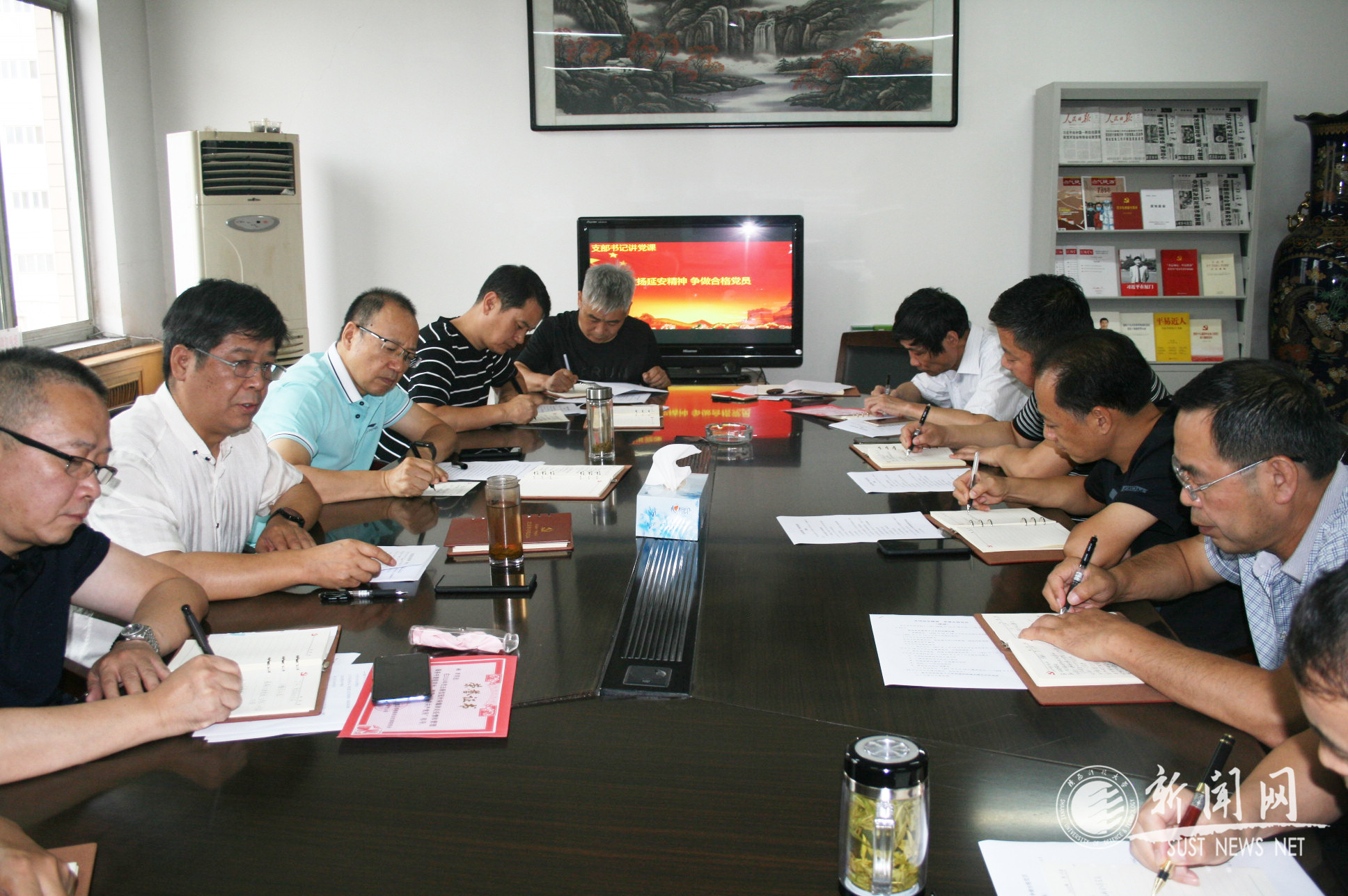 为庆祝中国共产党成立99周年,进一步强化广大党员的党性观念,树立典型、弘扬正气、凝聚力量,7月14日下午15:00,咸阳校区管委会召开全体党员大会表彰优秀党员,并在会后参加了学习延安精神的专题党课。咸阳校区管委会直属支部书记龚世平主持表彰会议,并讲授党课,支部全体党员参加会议。