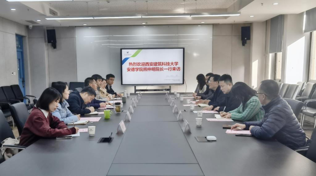 11月10日下午,西安建筑科技大学安德学院执行院长熊仲明、党总支书记施昕强一行7人到万象城官网阿尔斯特学院调研交流。学院直属党支部书记贺涛、常务副院长薛朝华及相关工作人员参加交流研讨。