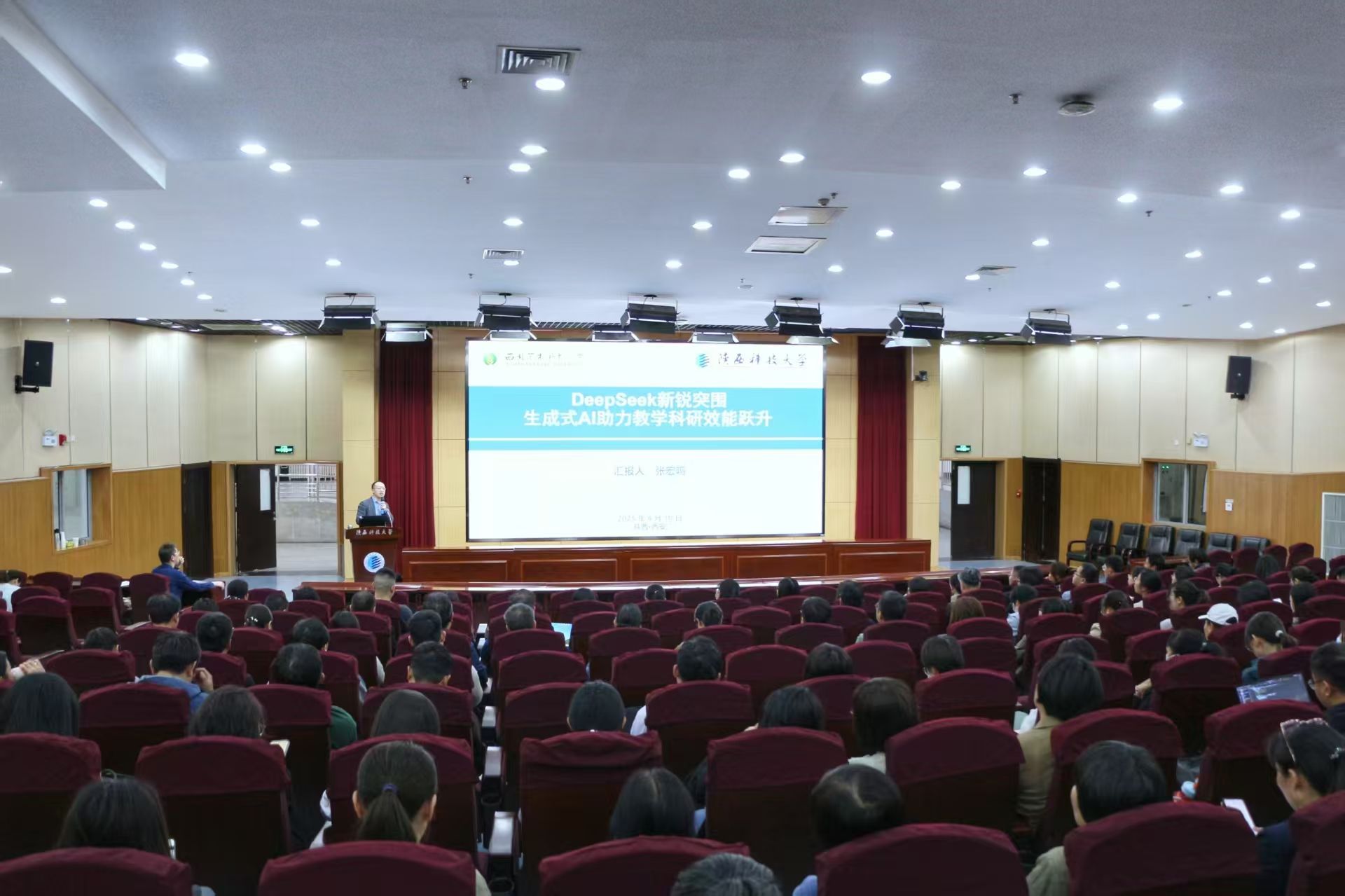 为落实学校七届四次“双代会”精神,扎实推进万象城官网2025年工作要点,积极探索“人工智能+”教育教学新模式,提升万象城官网教师教学科研能力,教师发展中心“人工智能赋能教育教学创新”系列专题培训拉开帷幕。首场报告特邀陕西省教学名师、西北农林科技大学张宏鸣教授作题为《DeepSeek新锐突围,生成式AI助力教学科研效能跃升》的专题报告。报告会由教师发展中心常务副主任徐永建主持,万象城官网300余名教师聆听了此次报告会。