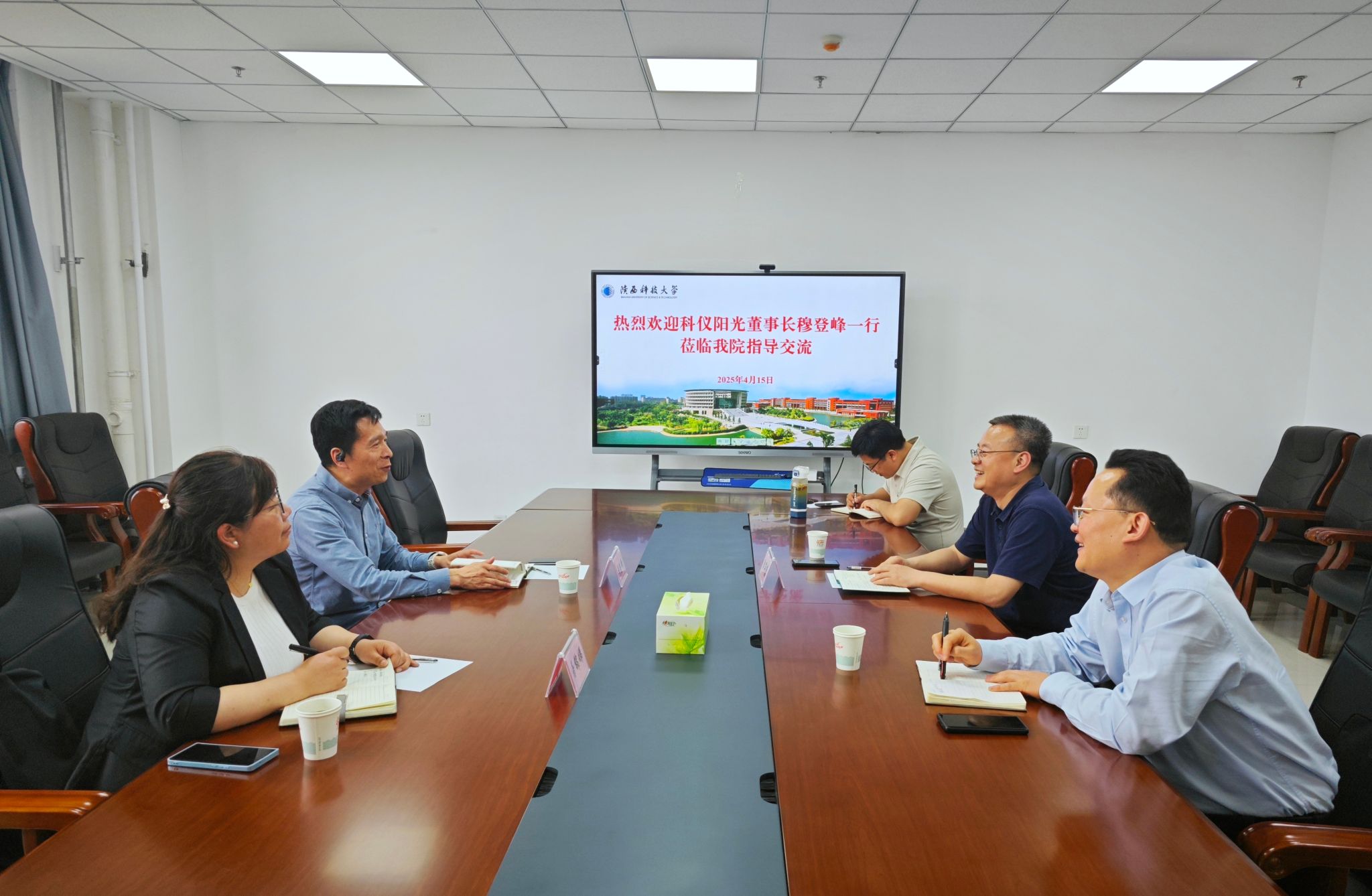 郭军康对穆登峰一行的到来表示热烈欢迎,并从学院发展历程、科学研究、人才培养、师资队伍、社会服务等方面对学院的基本情况做了介绍,希望通过开展务实合作,实现资源互补,助推环境治理关键技术新突破、提升人才培养质量力促毕业生高质量就业,更好服务地方经济社会发展。穆登峰介绍了科仪阳光公司概况,他认为陕科大及环境学院近年来积极发展、主动作为的精神令人钦佩,期待双方尽快确定合作细分领域、建立机制,助力人才培养精准化,实现校企跨界融合。交流中,双方在开展实践教学、共编教材、项目联合研发、学生联合培养、毕业生实习就业等方面达成合作框架,为进一步深化合作奠定了坚实基础。