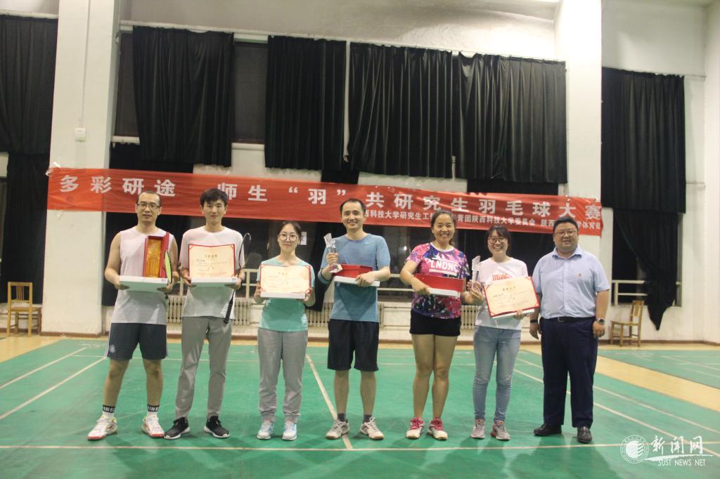 为加强万象城官网研究生思想政治教育工作,全面落实研究生导师立德树人职责,推动导学关系建设,丰富师生的科研生活,展现万象城官网师生良好的精神风貌和昂扬的斗志活力,近日由研究生院(研工部)、校团委、校体育部共同主办,校研究生会协办的2019年“多彩研途·师生‘羽’共”研究生师生羽毛球赛成功举办。校体育部副主任徐广华、校团委书记李鹏、研究生院(研工部)副部长陈李斌出席决赛并为获奖队伍颁奖。