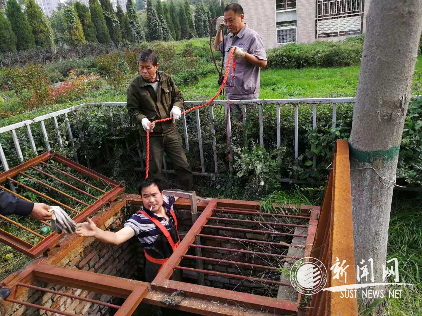 12月2日中午,9公寓东侧污水井外溢。接到报修后,维修人员齐心协力,强忍着恶臭有条不紊地打开地上井盖,配合专用清理车,对污物进行处理清洗,现场干净有序,清淤效果通畅彻底,保障了师生有一个洁净的生活、学习环境。
